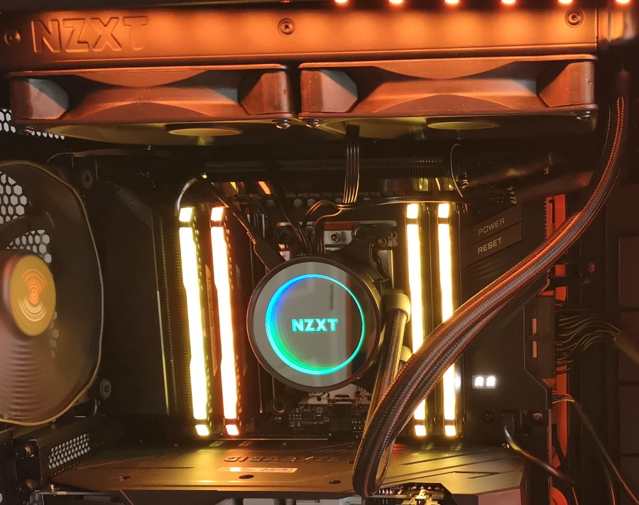 I settled on NZXT Kraken 62 (Amazon link). I don’t like fan liquid cooling because the pump can fail and you can’t see that visually. Hopefully, the software can successfully catch that. I also set the RGB colour to match the CPU temperature, which is a helpful indication of your CPU workload. The pump and the fans are quiet, which is nice.